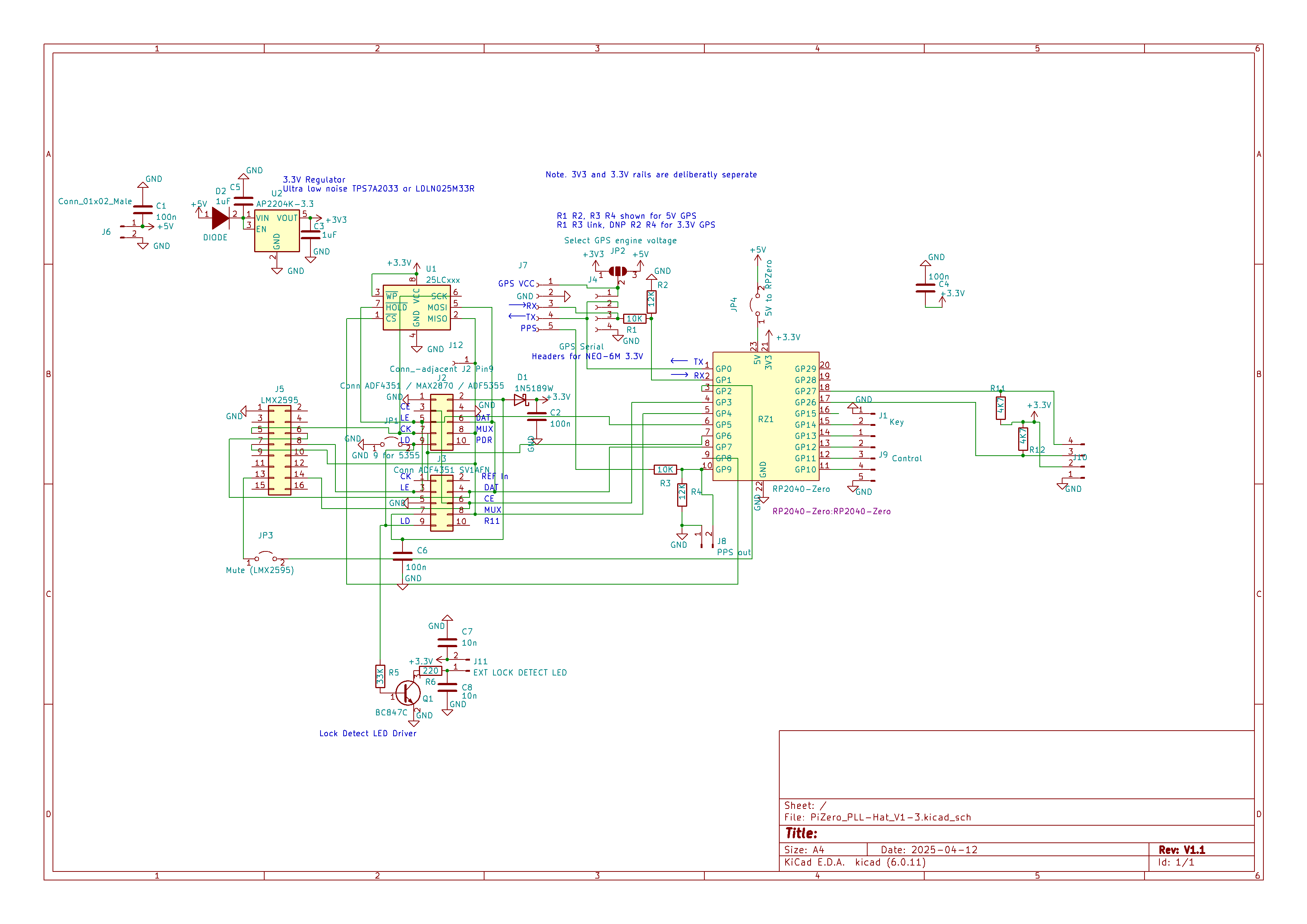 Pads are provided for optional supply line decoupling, 3.3V rail segregation diode, lock detect indication (where presented) and an onboard 3.3V regulator if needed.